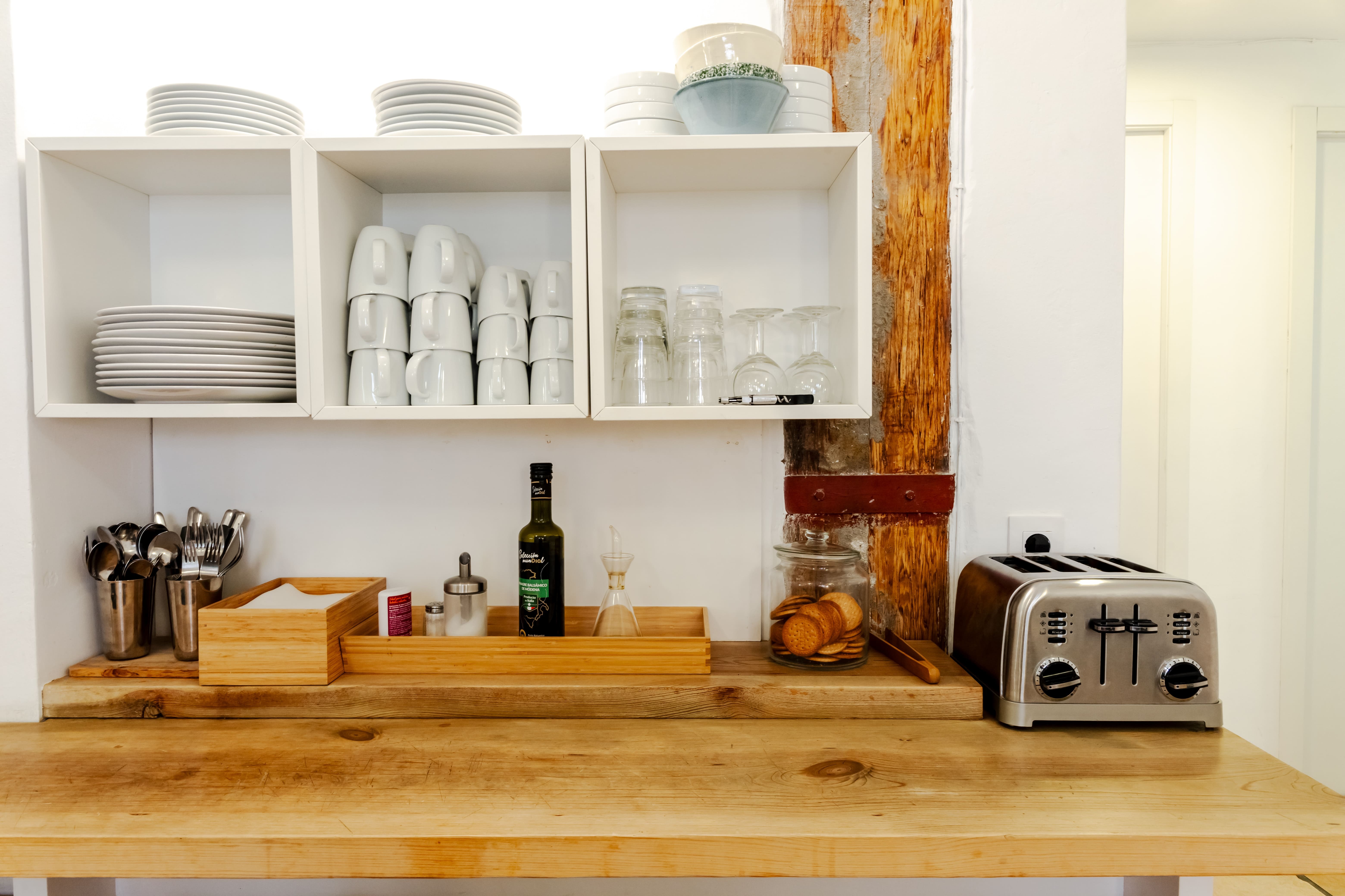Zona de comedorEstá abierta las 24 hs y tendrás café, leche, tés e infusiones, agua caliente y galletas. Está equipada con microondas, tostadora y una nevera. Es muy fácil organizar cualquier comida aprovechando el supermercado que está a 20m. |