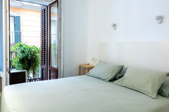 Nuestras habitaciones son luminosas, con ventanas amplias sobre un balcón con plantas. Usamos materiales cálidos con un mobiliario pensado para optimizar al máximo los espacios. Todas ellas cuentan con baño propio bien equipado.