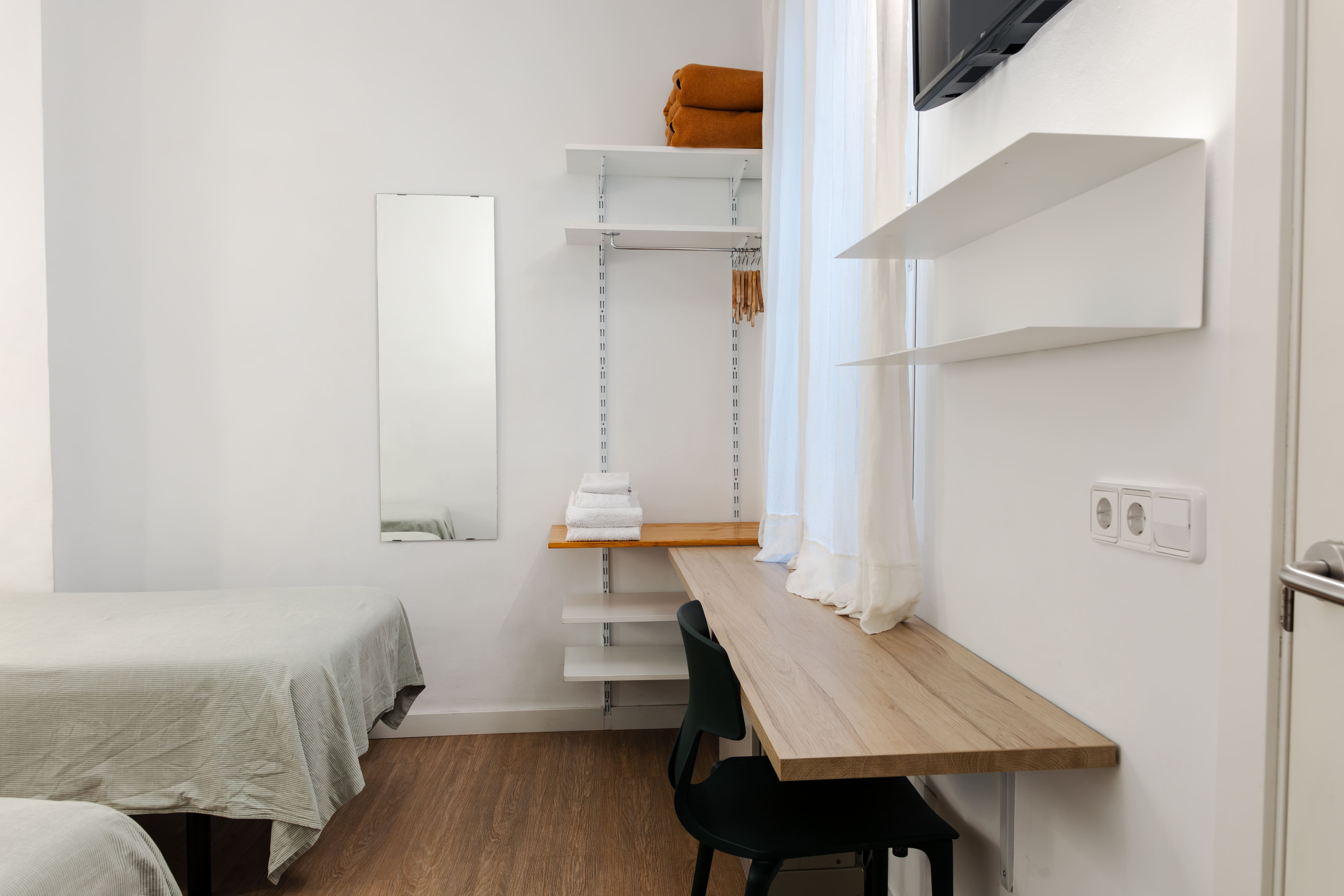 Amplia y especialmente luminosa, la Doble Confort ofrece un extra de espacio y comodidad. Dispone de una cama doble, zona de descanso, baño privado, climatización, TV y wifi gratuito. Perfecta para estancias más largas o para quienes buscan un ambiente más espacioso y relajante.