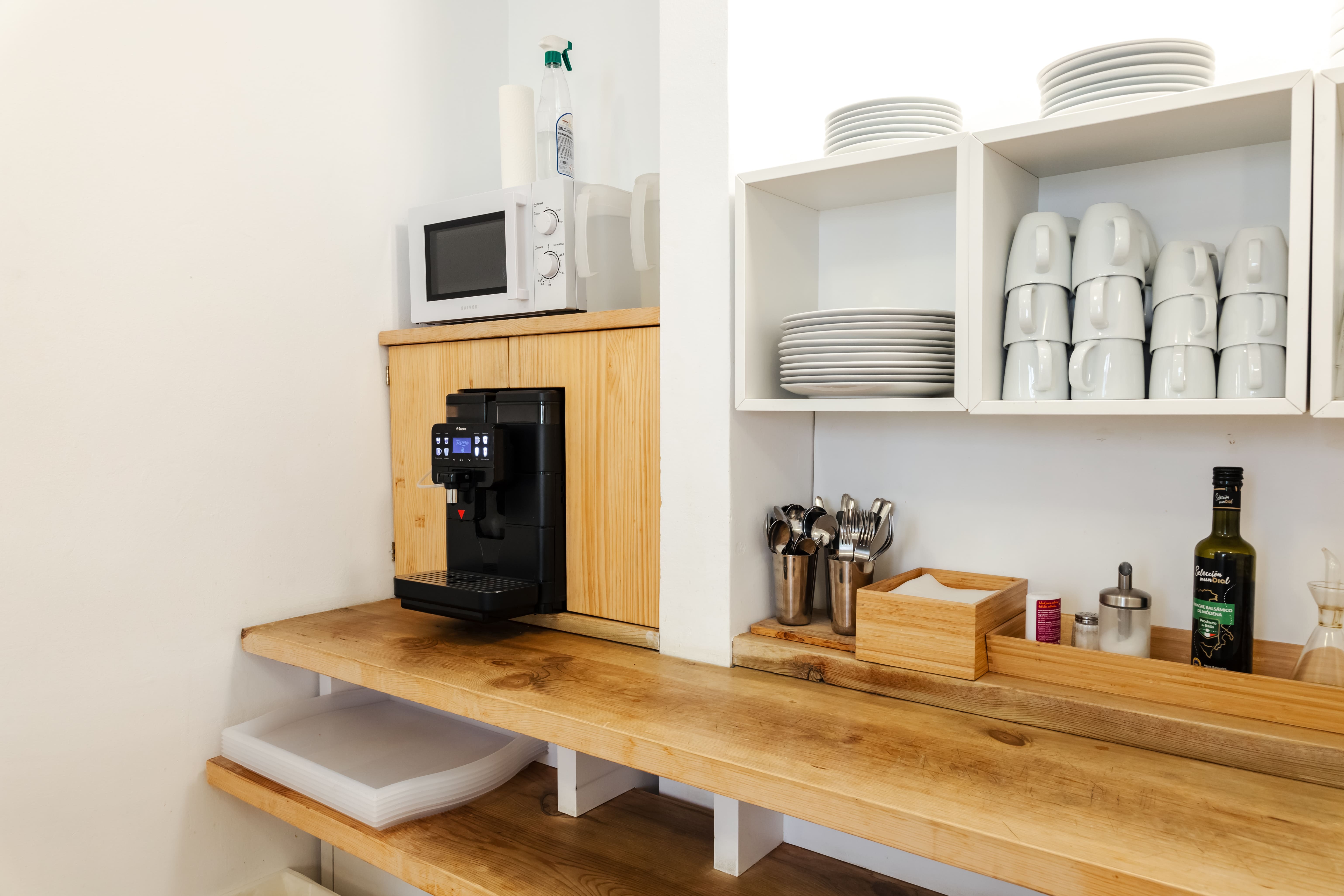 Zona de comedorEstá abierta las 24 hs y tendrás café, leche, tés e infusiones, agua caliente y galletas. Está equipada con microondas, tostadora y una nevera. Es muy fácil organizar cualquier comida aprovechando el supermercado que está a 20m. |